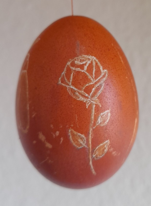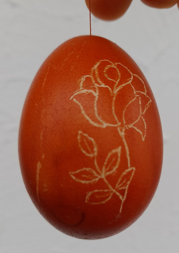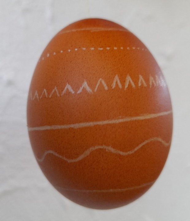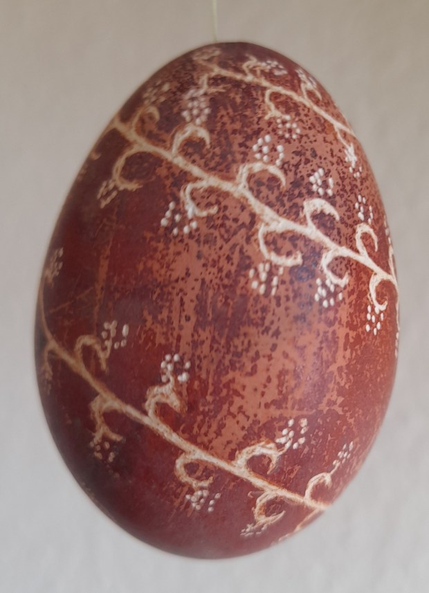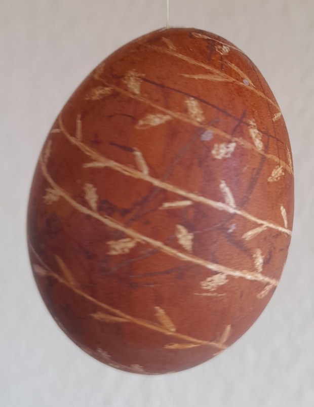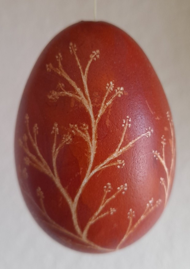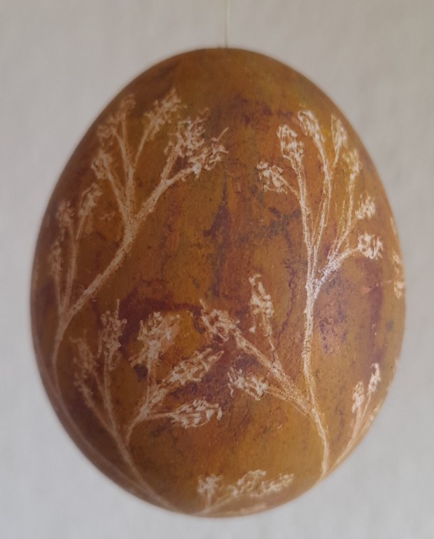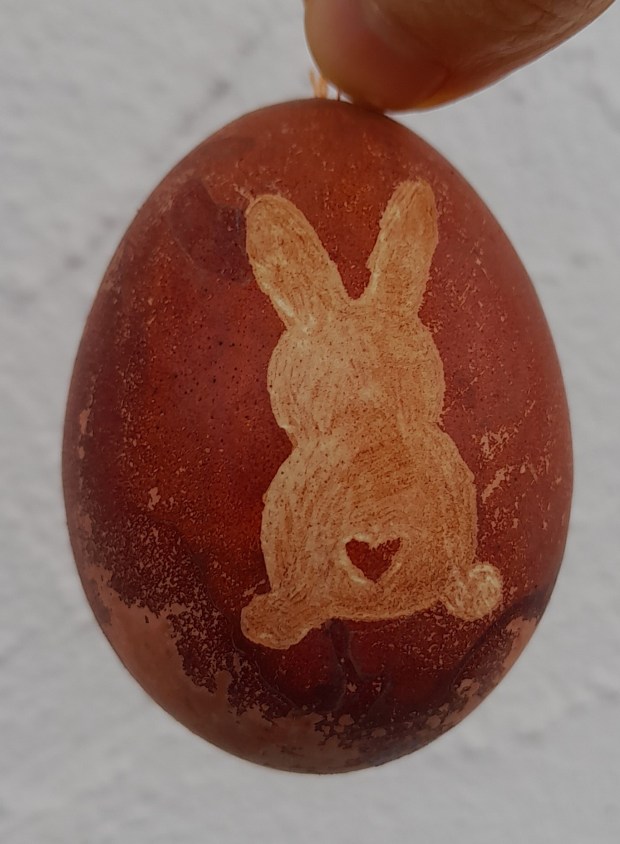 Die Eier habe ich mit Naturfarben gefärbt, ausgeblasen und anschließend mit einem Gravurstift bearbeitet.